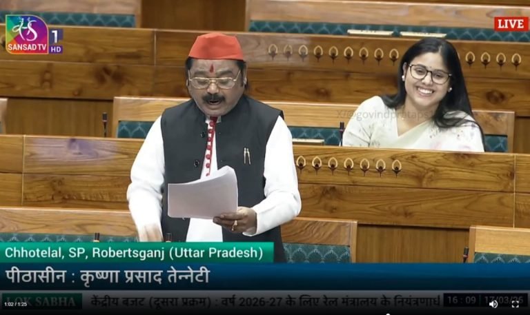 संसद की कार्यवाही के दौरान उस समय दिलचस्प मोड़ आ गया जब रॉबर्ट्सगंज (सोनभद्र) से समाजवादी पार्टी के सांसद छोटेलाल सिंह ने रेलवे बजट पर अपनी बात रखने के लिए लोकगीत का सहारा लिया। उन्होंने सदन में अपनी क्षेत्रीय भाषा बघेली की मधुर धुन में गाकर रेल मंत्री अश्विनी वैष्णव का ध्यान अपनी ओर खींचा। सांसद ने अपनी मधुर आवाज में गाते हुए अपने क्षेत्र की रेल सुविधाओं और नई लाइनों के विस्तार की मांग को गीतों के माध्यम से पिरोया, जिसे सुनकर सदन में मौजूद सदस्य अपनी मुस्कान नहीं रोक पाए।
