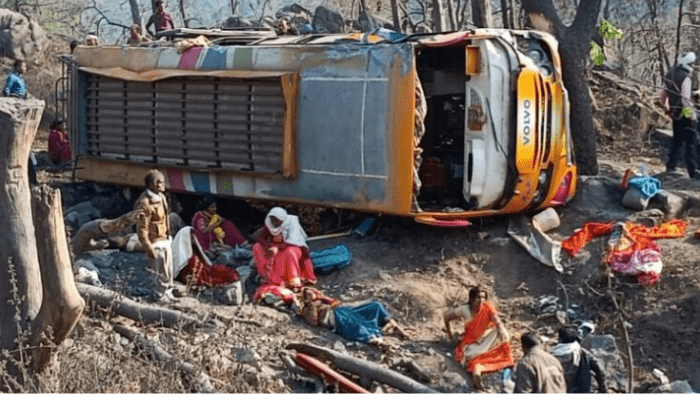 बस को राजनांदगांव के ग्राम सिरभाही निवासी कमलेश वर्मा चला रहा था । बस अनियंत्रित होकर पलटी और घाटी से नीचे गिरने लगी। पेड़ ने बस को नीचे गिरने से बचा लिया। पेड़ के सहारे अटकी बस से लोगों को निकालकर सड़क पर लाया गया। वाहन के घाटी में गिरने पर बड़ा हादसा हो सकता था ।