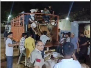 धमतरी/(CG Cow Smuggling Case): जिले में सोमवार देर रात गौवंशों से भरी एक मेटाडोर पकड़े जाने का मामला सामने आया है। बताया जा रहा है कि वाहन में कई गौवंशों को ठूंस-ठूंसकर क्रूरतापूर्वक ले जाया जा रहा था। घटना की जानकारी मिलते ही गौसेवक मौके पर पहुंचे और वाहन को रोक लिया। इसके बाद मामला कोतवाली थाने तक पहुंचा, जहां देर रात तक हंगामे की स्थिति बनी रही।