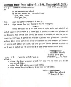 वहीं मुंगेली जिले के डीईओ ने अपने आदेश में कहा है कि