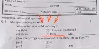 Ram name used in dog question, दरअसल, अंग्रेजी विषय के वस्तुनिष्ठ प्रश्न में पूछा गया था— “What is the name of Mona’s dog?”