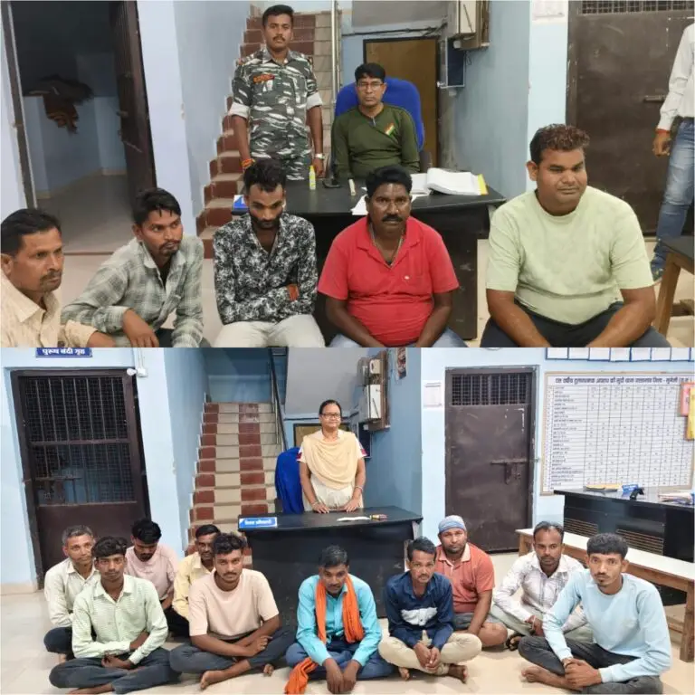 Mungeli Breaking: मुंगेली पुलिस ने अवैध जुए के खिलाफ सख्त कार्रवाई करते हुए “ऑपरेशन बाज” के तहत बड़ी सफलता हासिल की है। पुलिस अधीक्षक भोजराम पटेल के निर्देश एवं अति. पुलिस अधीक्षक नवनीत कौर छाबड़ा, एसडीओपी मयंक तिवारी, डीएसपी नवनीत पाटिल व एस.आर. घृतलहरे के मार्गदर्शन में सिटी कोतवाली, लालपुर, जरहागांव व सायबर सेल की संयुक्त टीम ने अलग-अलग स्थानों पर एक साथ छापेमारी कर 9 मामलों में 41 जुआरियों को गिरफ्तार किया। पुलिस ने मौके से ₹23,310 नगद व 52 पत्ती ताश जब्त किए।