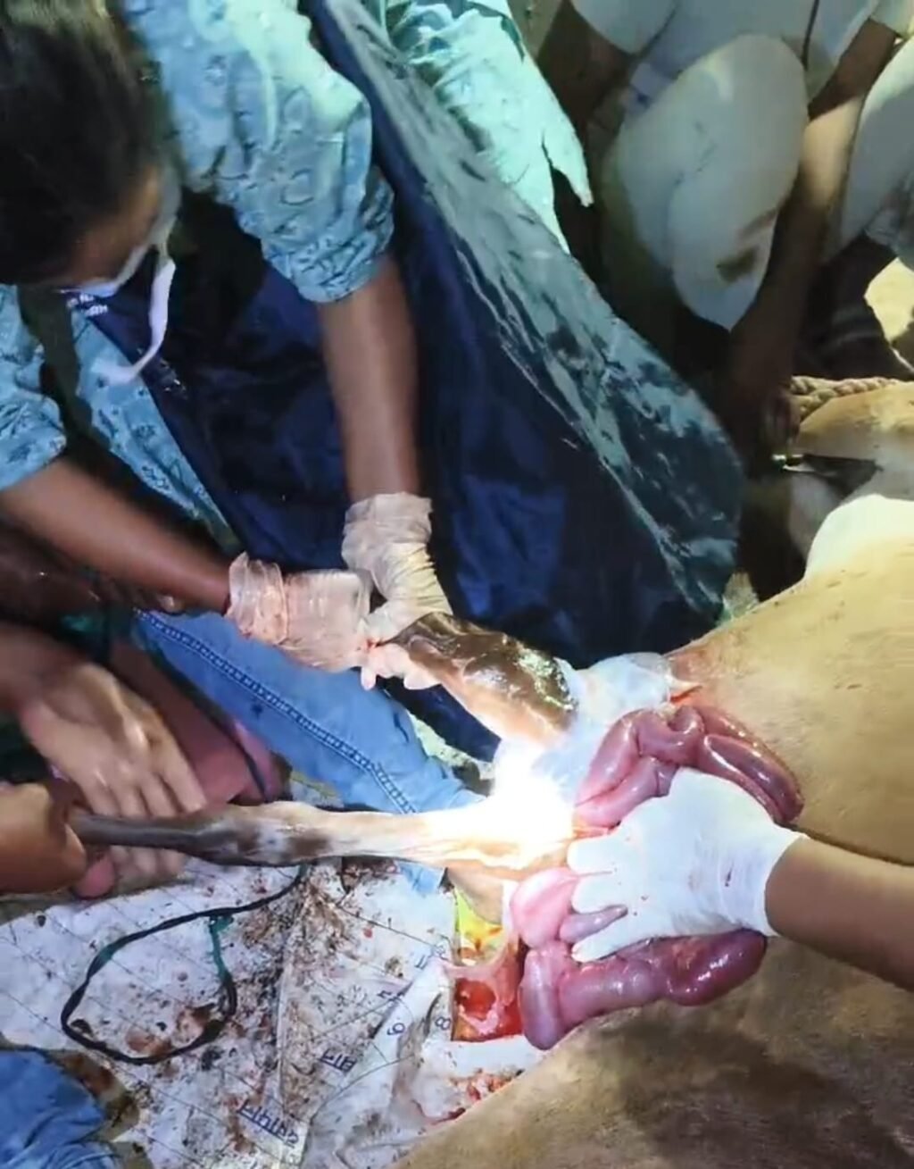 जानकारी के मुताबिक, गाय के पेट में बछड़े की मौत हो जाने के कारण स्थिति काफी नाजुक हो गई थी। गाय असहनीय दर्द से तड़प रही थी और उसकी हालत लगातार गिर रही थी। जैसे ही इसकी सूचना गौ सेवा धाम, मुंगेली की टीम को मिली, उन्होंने बिना समय गंवाए गाय को तत्काल जिला पशु चिकित्सालय पहुंचाया।