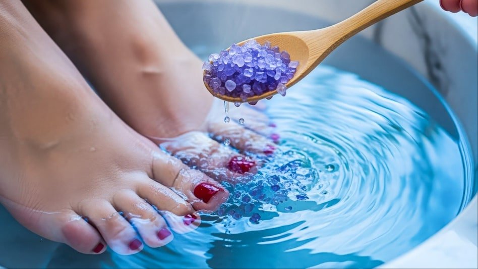 एक टब में गुनगुना पानी लें। इसमें एक चम्मच समुद्री नमक (Sea Salt), थोड़ा सा नींबू का रस और अपना पसंदीदा माइल्ड शैम्पू मिलाएं। अपने हाथों और पैरों को 15 मिनट के लिए इसमें डुबोकर रखें। यह थकान मिटाने के साथ डेड स्किन को नरम कर देगा।
