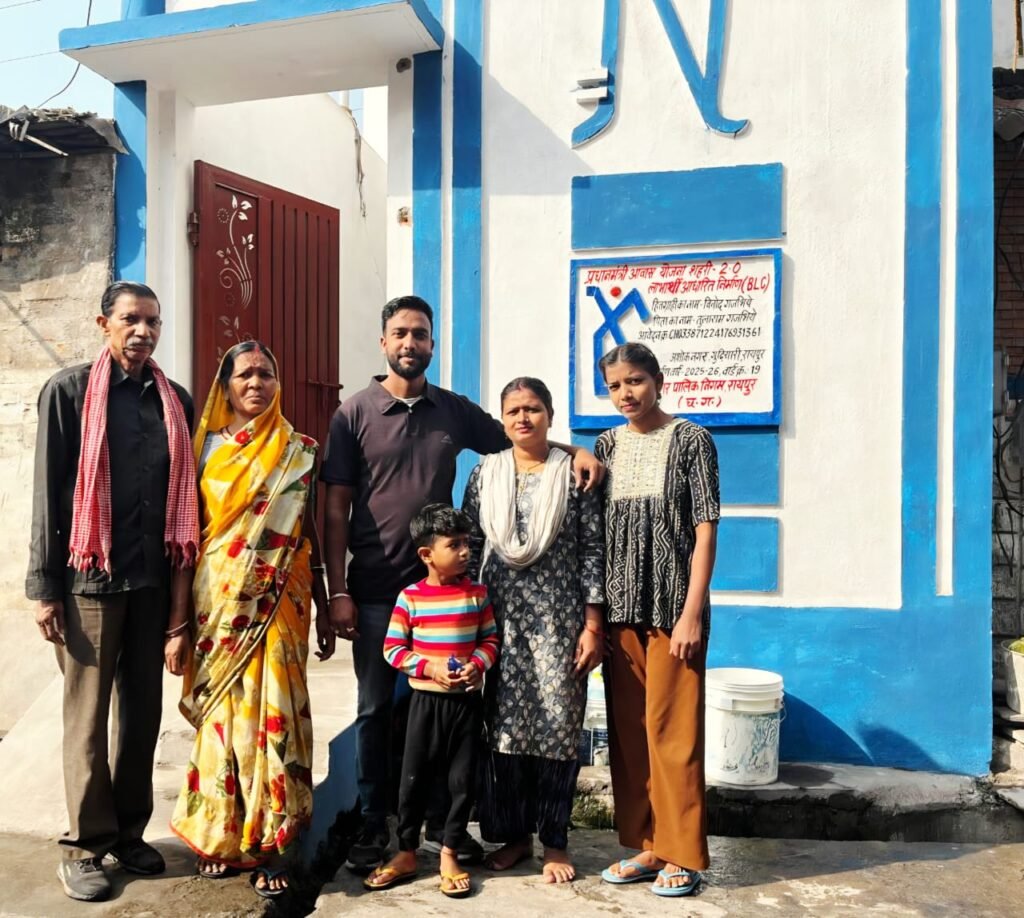 NV News- रायपुर के अशोक नगर, गुढ़ियारी में रहने वाले विनोद गजभिये के लिए प्रधानमंत्री आवास योजना शहरी-2.0 (PMAY-U 2.0) का ‘बीएलसी’ (लाभार्थी आधारित निर्माण) घटक एक नई उम्मीद बनकर आया है। पहले जहाँ उनका जीवन कच्चे घर में संघर्षों के बीच बीत रहा था, वहीं अब पक्के मकान ने उनके परिवार को सुरक्षा और सम्मान दिया है।