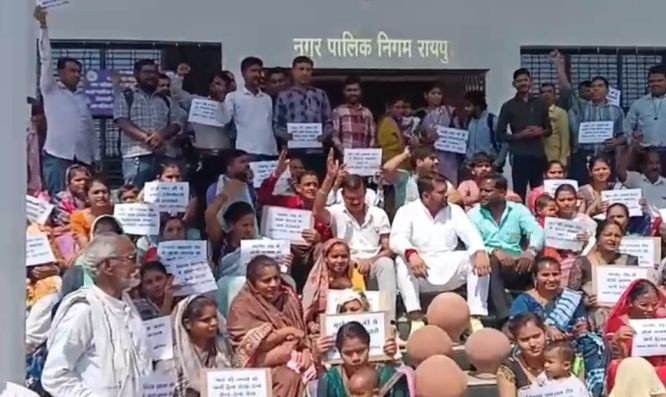 रायपुर नगर निगम के अंतर्गत आने वाले कई वार्डों में पिछले कुछ समय से पानी की सप्लाई ठप होने या बहुत कम दबाव के साथ गंदा पानी आने से नागरिक बेहद परेशान हैं। इसी समस्या को लेकर आज बड़ी संख्या में महिलाएं और स्थानीय निवासी खाली मटके लेकर नगर निगम मुख्यालय (महात्मा गांधी सदन) पहुँचे। प्रदर्शनकारियों ने निगम प्रशासन और महापौर के खिलाफ जमकर नारेबाजी की और निगम के मुख्य द्वार पर ही मटके फोड़कर अपना विरोध दर्ज कराया। लोगों का कहना है कि गर्मी की शुरुआत से पहले ही शहर में ‘पानी का हाहाकार’ मच गया है और शिकायत के बावजूद निगम के अधिकारी उनकी समस्या पर ध्यान नहीं दे रहे थे।