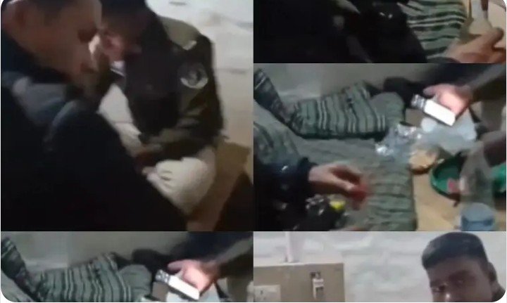 ड्यूटी के दौरान शराब पीते दो आरक्षक कैमरे में कैद, वीडियो वायरल होते ही एसएसपी ने किया लाइन अटैच